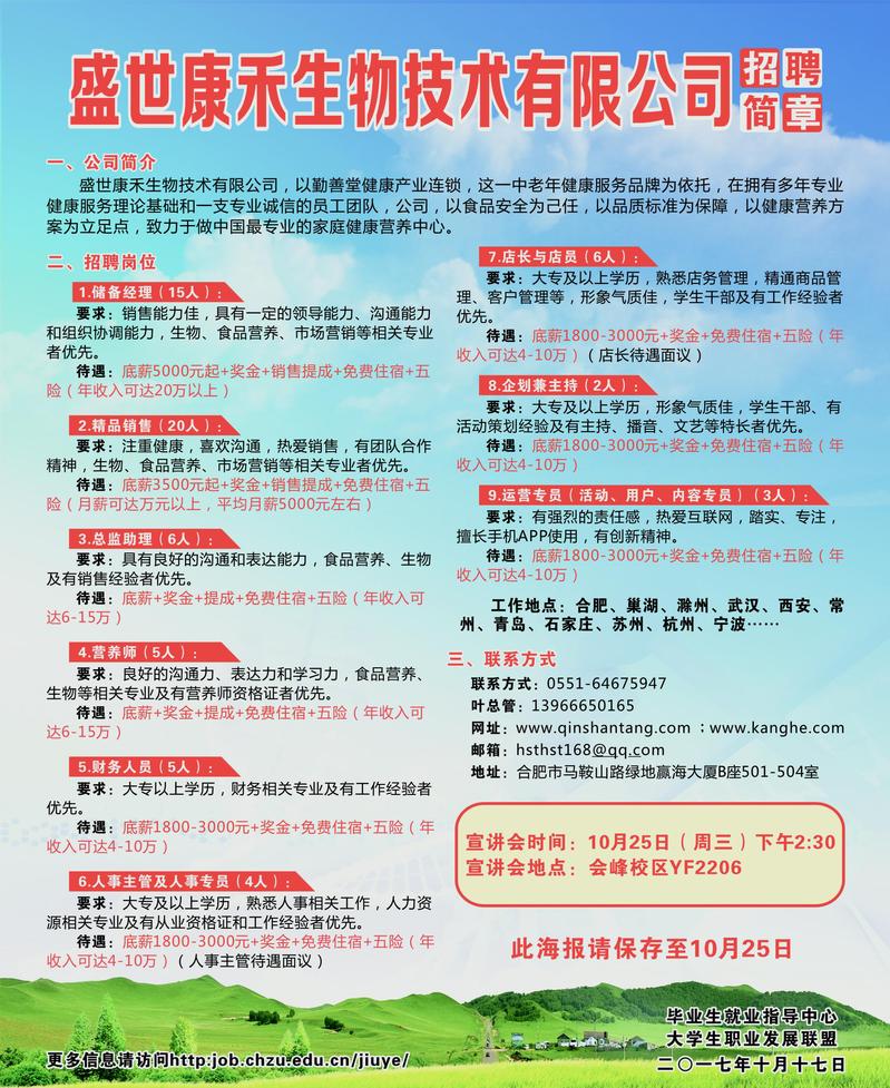10月25日(周三)盛世康禾生物技术有限公司专场宣讲会