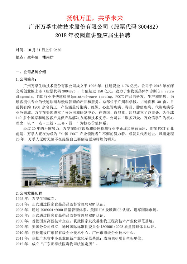 | 【广州万孚生物技术股份有限公司2018年招聘,10月31日9:30,南厅】 |
