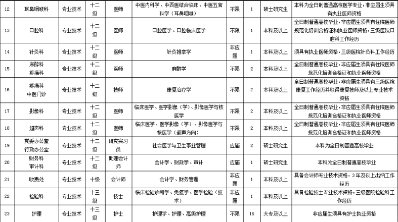 (四)应届毕业生及初级专业技术资格人员年龄在18周岁以上、30周岁以下(1989年4月至2001年4月期间出生),中级专业技术资格人员年龄在35周岁以下(1984年4月以后出生);博士研究生或副高级专业技术资格人员年龄在45周岁以下(1974年4月以后出生);