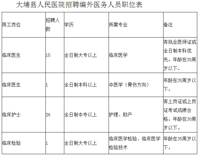 1.大埔县人民医院2019年公开招聘编外医务人员职位表