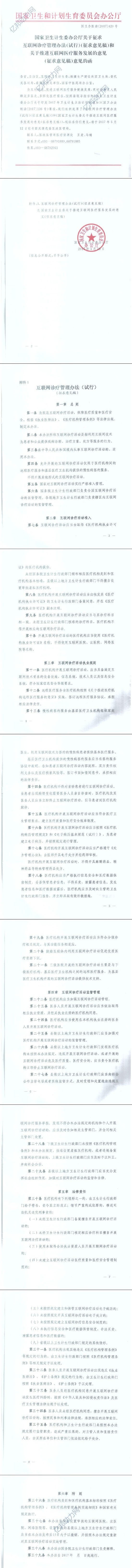 附《关于征求互联网诊疗管理办法(试行)(征求意见稿)和关于推进互联网医疗服务发展的意见(征求意见稿)意见的函》