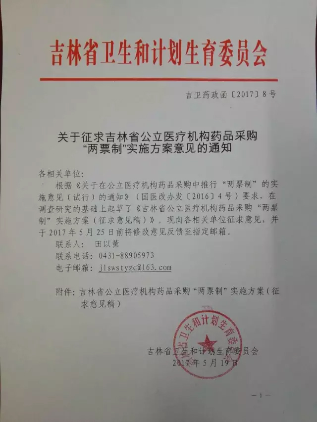 吉林省公立医疗机构药品采购“两票制”实施方案(征求意见稿)