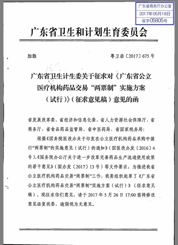 此外,根据国家版“两票制”文件,允许偏远、交通不便的基层医疗机构,药品流通企业在“两票制”基础上再开一次药品购销发票。对此,广东省“两票制”方案明确,对于部分边远山区,供应广东省50个山区县的乡(镇)级(不含城区)医疗卫生机构(不含社区卫生服务中心)的药品,允许药品流通企业在两票制的基础上再开一次药品购销发票,其他县(不含城区)的基层卫生医疗机构(不含社区卫生服务中心)需再开一次药品购销发票的,需经省同意。