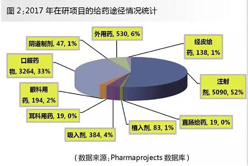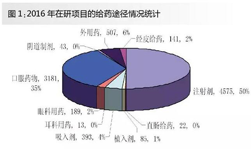 药物研发产业向生物技术药物领域的倾斜,是否会对药物的临床给药方式产生影响,可以从在研药物给药途径的相关数据进行分析。