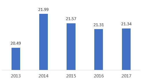 全球制药企业TOP50的门槛在21亿美元上下浮动,2017年全球TOP50药企的标准是处方药销售收入21.34美元,约合人民币145亿元。