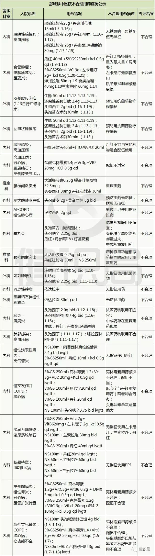 附:舒城县中医院、城关镇卫生院不合理用药病历公示