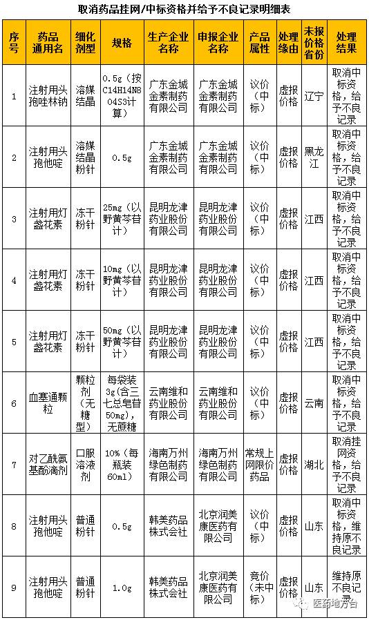 将广东金城金素制药有限公司等3家企业列入一般不良记录,并取消其生产的注射用头孢唑林钠(规格:0.5g)6个品规的中标资格,违规品种自取消之日起不得参加本周期和下一周期四川省药品集中采购。