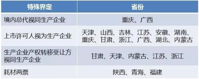 而从各省已出台方案看,视同生产企业、可加一票、不执行两票制的情形都基本向国家版两票制意见靠拢,当然也存在部分个性化界定,如下表所示。