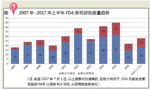 2017年是GDUFA法案实施的关键年,FDA将药物审评与之相结合,在创新/突破性药物加速审批中取得了显著成效,有效地加速了创新药及罕见病治疗药物的审批和上市进程。同时,和以往相比,FDA在限制获批药物的使用上有更强的掌控力,因此创新药物和生物制药的审评审批取得了突破性进展。除了政策方面因素外,药品审批加速更有赖于制药企业在研发前期与官方密切沟通,例如百时美施贵宝研发的Opdivo在4天内获批,得益于其临床研究期间主动与FDA审评专家建立密切的沟通,促使审评专家能及时获知企业研发动态和详情,这对于推动Opdivo在后期快速获批有很大帮助。