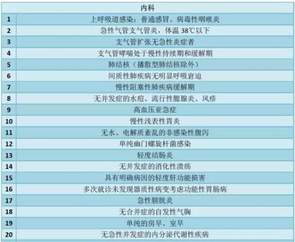 附:门、急诊原则上不需要输液治疗的53种疾病