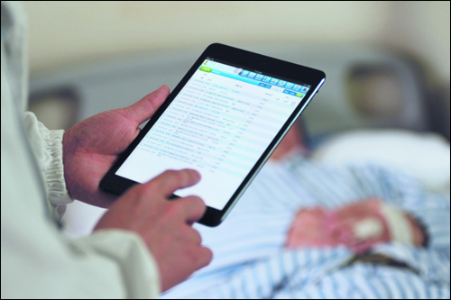 在西达斯西奈医院心外科,医务人员使用Epic的MyChart软件记录病人的关键体征和其他信息。在这个科室,病人通常停留很长时间。32岁的病人阿瓦德·拉鲁姆(AwadLsallum)曾专程前往沙特,在那里接受心脏移植。不过拉鲁姆似乎对iPad没什么特殊印象,他已经在医院呆了40天,甚至一度将它还回去。但他说拥有iPad“令人感到欣慰”,因为知道到底发生了什么。
