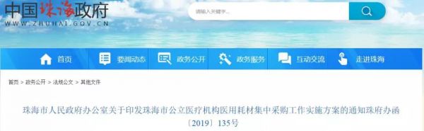 日前,珠海市人民政府为响应国家号召,进一步降低医用耗材虚高价格,印发了《珠海市公立医疗机构医用耗材集中采购工作实施方案》。