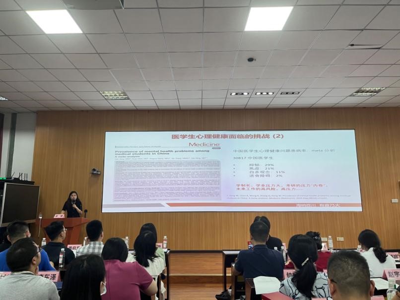 在班主任集中培训环节,学生心理健康教育专职岗孟媛老师以“研究生常见心理困扰与危机预防”为题,从医学生心理健康面临的挑战切入,总结分析了目前研究生常见的危机,引导班主任如何倾听学生的情感与需求,并说明了学院在研究生心理健康方面提供的支持,根据学生的实际情况出发,通力合作帮助学生解决问题。