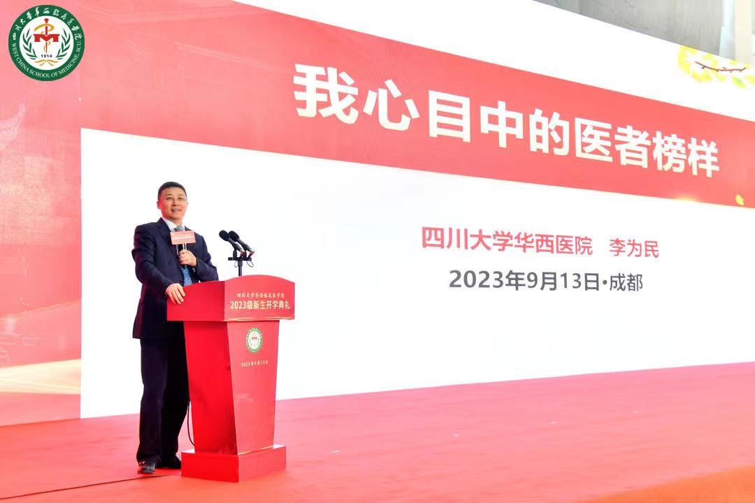 9月11日-12日,我院顺利接待411名全日制博士新生、674名全日制硕士新生、36名非全日制新生、40名来华留学研究生报到。报到后,我院精心组织安排新生入科专业教育、分学位硕博培养宣讲、辅导员走访寝室、心理测评、选课等一系列新生入学教育活动。9月13日,学院开学典礼及新生开学第一课共计400余名新生参加。开学典礼上,李为民院长在致辞中对2023级新生加入华西临床医学院大家庭表示热烈欢迎和真诚祝贺。华西临床医学院“开学第一课”由李为民院长、华西终身教授李幼平分别以《我心中的医者榜样》《我的经历与成长》为题作精彩授课。