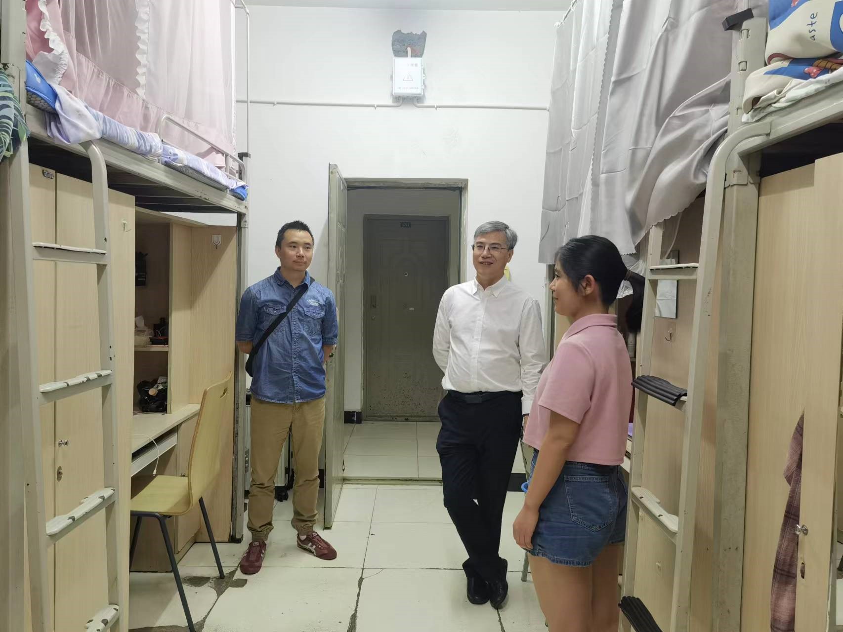 深入落实“一线规则”,学院党政领导与研究生辅导员深入两校区研究生宿舍楼,进一步宣传习近平新时代中国特色社会主义思想,掌握学生生活学习状态与思想动态,帮助同学们在新学期做好思想防线和安全防线。新学期近两周,罗凤鸣常务副书记、王坤杰副院长带领研究生辅导员分别走访了两个校区共六栋宿舍楼的407间新生寝室。践行“一线规则”,打造了集学生思想教育、师生交流、文化活动、生活服务于一体的教育生活园地。