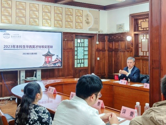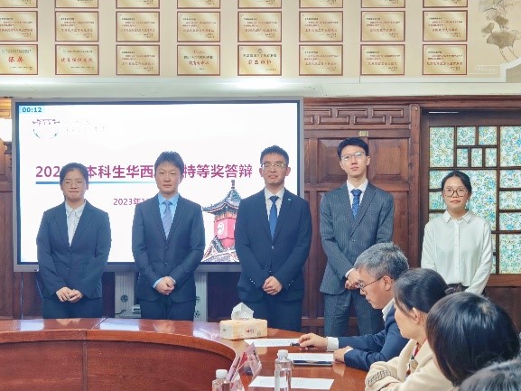 今年共有30名同学提出申请,22名同学进入答辩环节,通过PPT展示、评委提问答辩,最终评选出2020级护理学段丽阳、2021级医学技术与智能制造双学士学位姜月琦、2018级临床医学八年制创新班王康、2020级临床医学五年制李吉利、2016级临床医学八年制创新班郑权共5名同学,获得2023年度本科生华西英才特等奖。