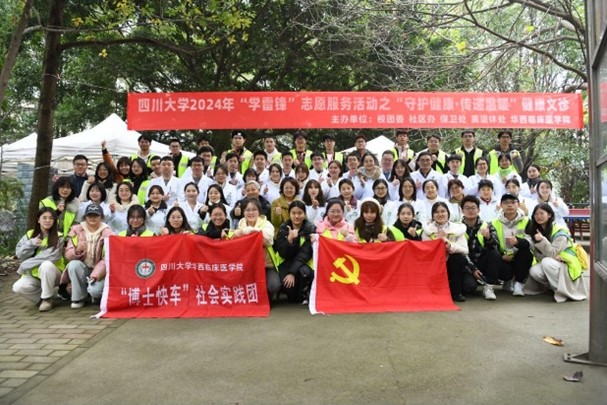 今年是毛泽东等老一辈革命家为雷锋同志题词61周年,3月5日是第25个“中国青年志愿者服务日”。为深入学习宣传贯彻党的二十大精神,贯彻落实习近平总书记关于弘扬雷锋精神的重要论述。3月3日,四川大学2024年“学雷锋”志愿服务活动—“守护健康·传递温暖”健康义诊活动在望江校区举行,我院“博士快车”医疗服务团的36名博士参加了本次活动,服务问诊附近居民群众430余人。