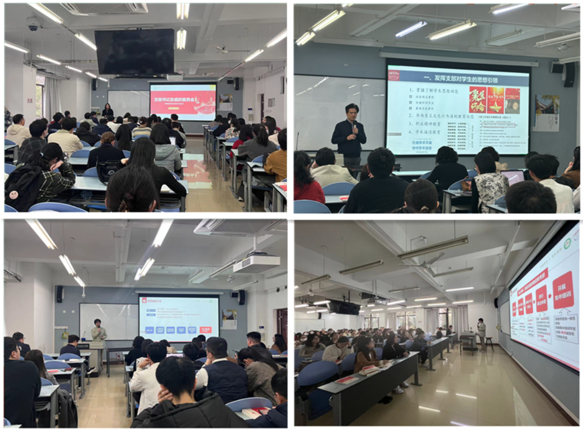苏书记在会议上向各位学生支部书记与组织委员传达了学院支部书记会议精神,强调了要发挥学生党支部对学生思想的引领作用,铸牢意识形态责任制,加强学生思想动态研判与引导。要求学生党员干部要密切关注学生党员和群众的思想动态,面对特殊或异常情况,及时与上级党组织和辅导员沟通汇报。学生支部要积极倡导华西员工文化行为准则,从党支部层面开展好职业精神教育与学术诚信教育。此外,苏书记就《华西临床医学院2024年度学生支部考核指标(讨论稿)》中的具体内容与各位支部书记及组织委员进行了交流,对支部日常工作开展、支部加分项、支部负面清单等主要指标进行说明和征求意见。