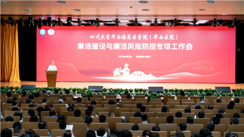 4月2日,我院2024年度廉洁建设及廉洁风险防控专项工作会在厚德楼多功能厅举行。全体在家院领导、党总支书记,纪委委员,职能部门负责人、临床医技科室负责人、党支部书记等科以上干部450余人参加会议。会议由罗凤鸣院长主持。