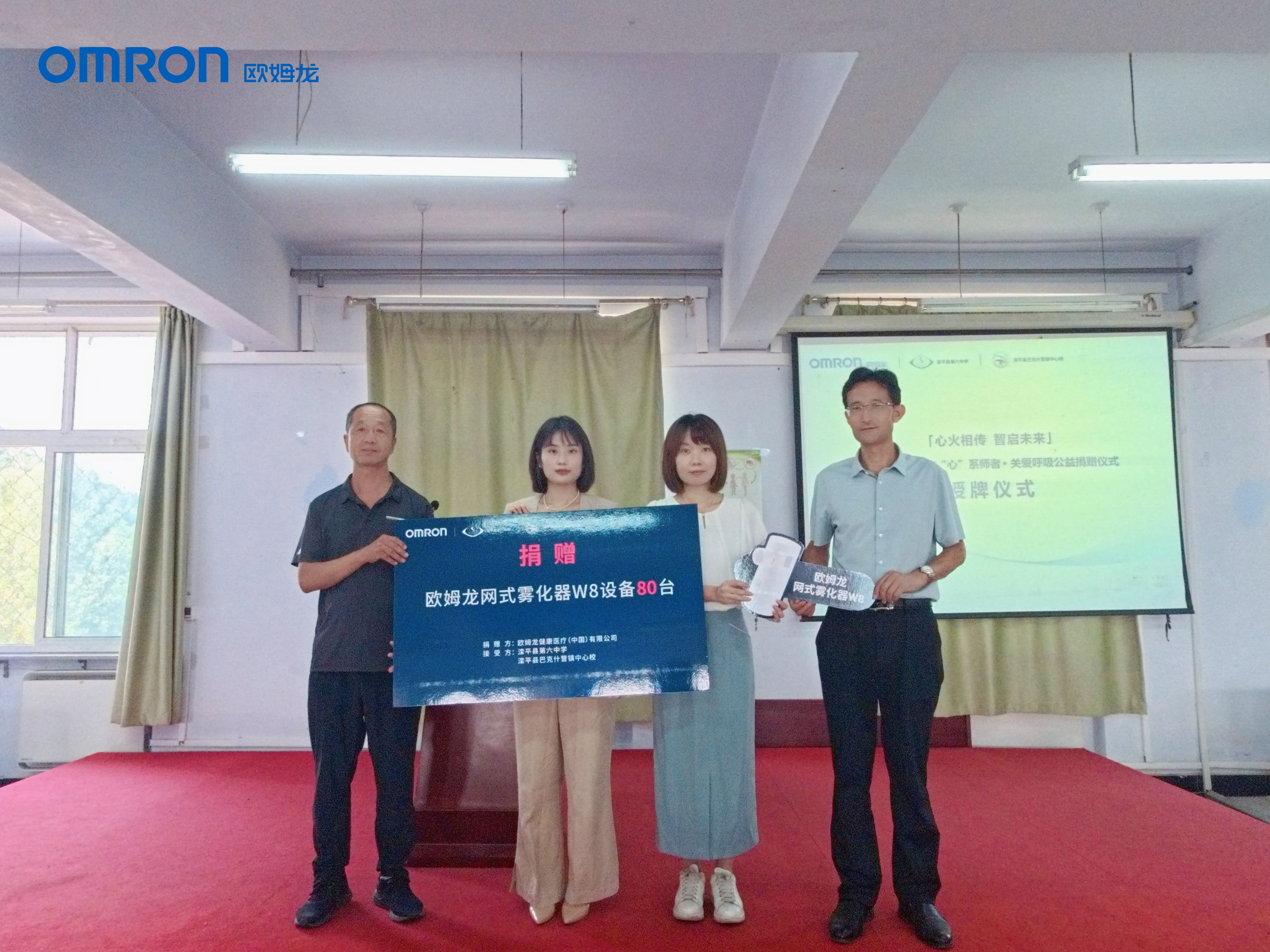 在第41个教师节来临之际,一场以“心火相传,智启未来”为主题的公益捐赠活动在河北省承德市滦平县第六中学举行。欧姆龙健康医疗(中国)有限公司(以下简称“欧姆龙”)走进人民日报社定点帮扶的滦平县,向滦平县第六中学、巴克什营镇中心校的教师们捐赠了便携式网式雾化器,并开展了呼吸健康科普讲座,旨在通过公益行动关注教师职业健康,提升教师呼吸健康防护水平。