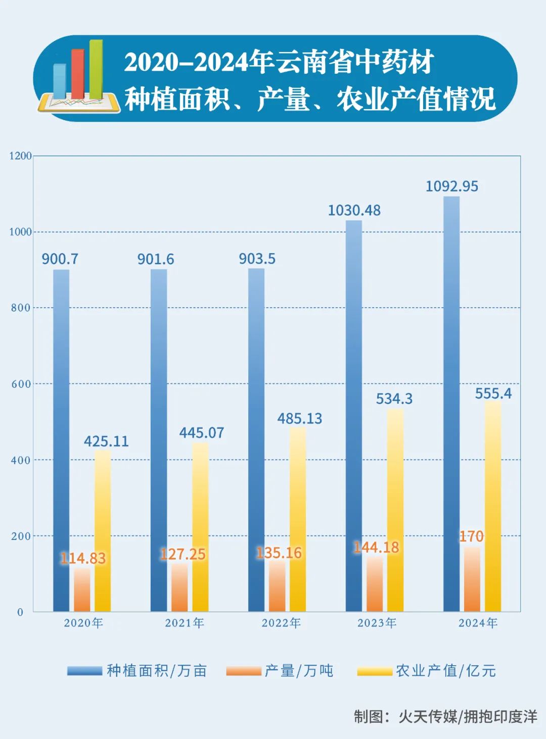 2024年,全省中药材种植面积达1092万亩,产量170万吨,全产业链产值突破1800亿元,种植面积、产量、农业产值均连续6年稳居全国第一,并逐步形成从道地产区、加工集群到创新终端的全链条体。