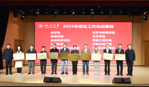 近日,四川大学对2025年度本科招生工作进行了总结表彰,我院荣获“四川大学2025年度本科招生工作先进集体”荣誉称号。医学院常务副院长王坤杰在表彰会上做华西临床医学院招生宣传工作经验分享。