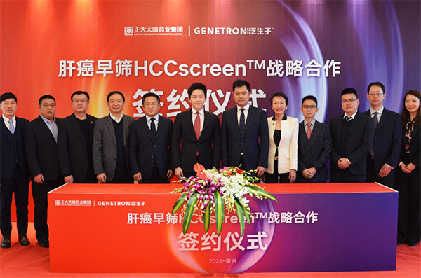1月6日,正大天晴药业集团股份有限公司就基于液体活检技术的肝癌早筛产品HCCscreen™,与北京泛生子基因科技有限公司达成战略合作协议,并举行了签约仪式。正大天晴药业集团董事长谢承润、泛生子联合创始人及首席执行官王思振携双方高管团队出席签约仪式。